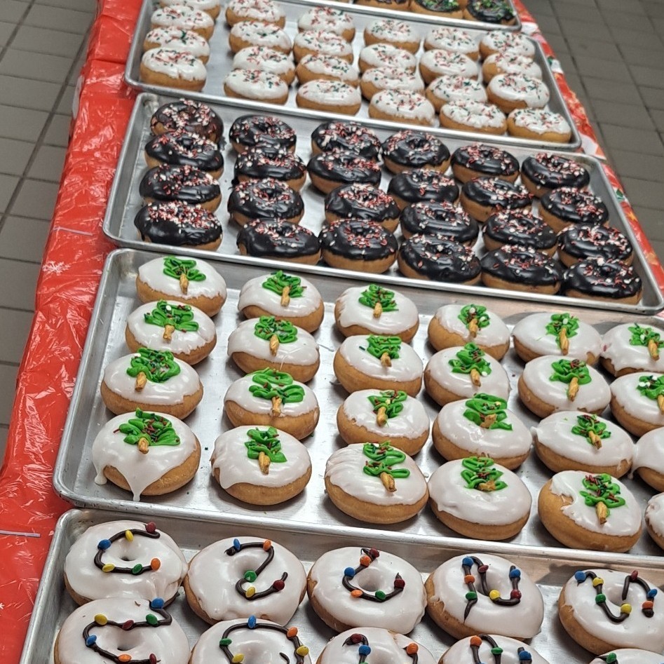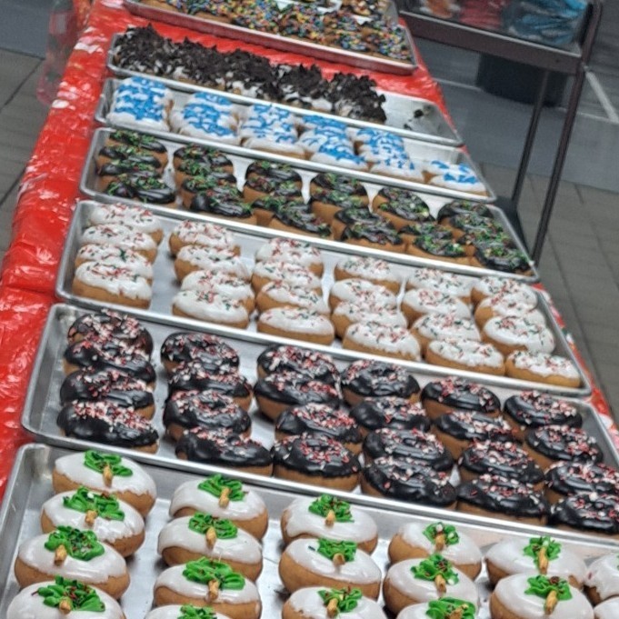 Sims you sure do love to make donuts. Well, I guess you can say you just love to bake. This is what we did yesterday, 24 dozen cookies, 280 cupcakes and 252 donuts not bad for 1 day!